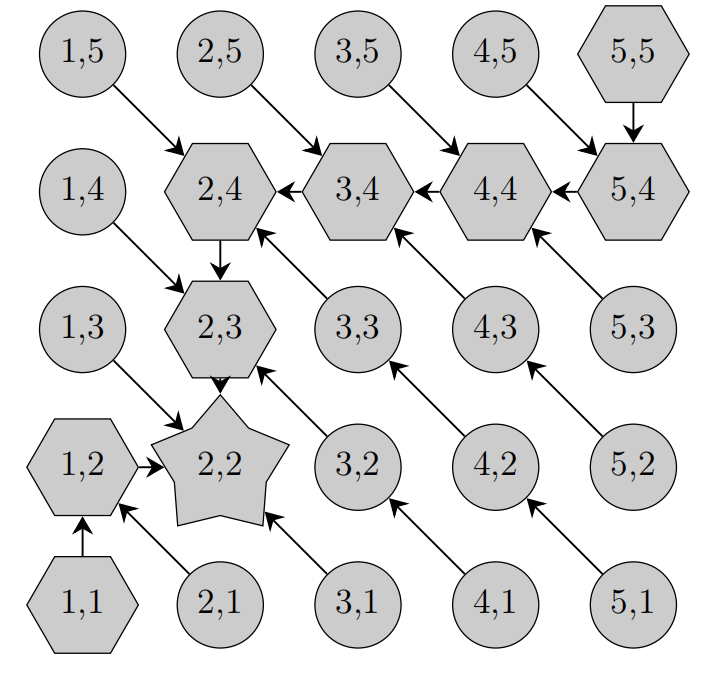 如果面对一个询问\(q(x,y)\),如果\((x-1,y+1),(x+1,y-1)\)都在