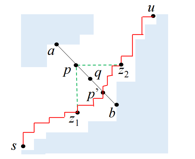 i.e. a,b横坐标差大于\(\sqrt{n}\),那么选择一个方向,使得回复后剩余可行的路径条数最多。(称为non-short query)